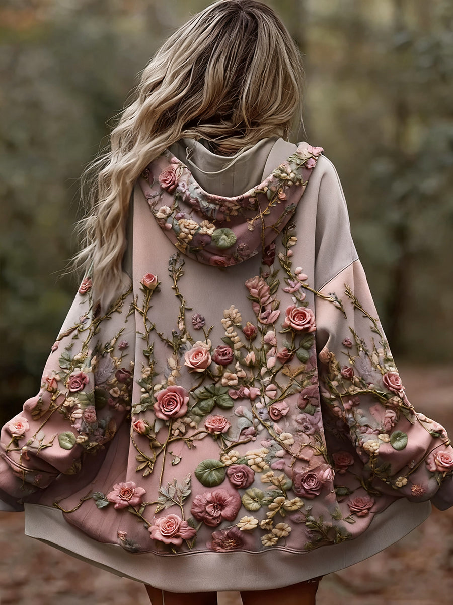 Dámské bílé květinové vyšívané mikiny s kapucnou