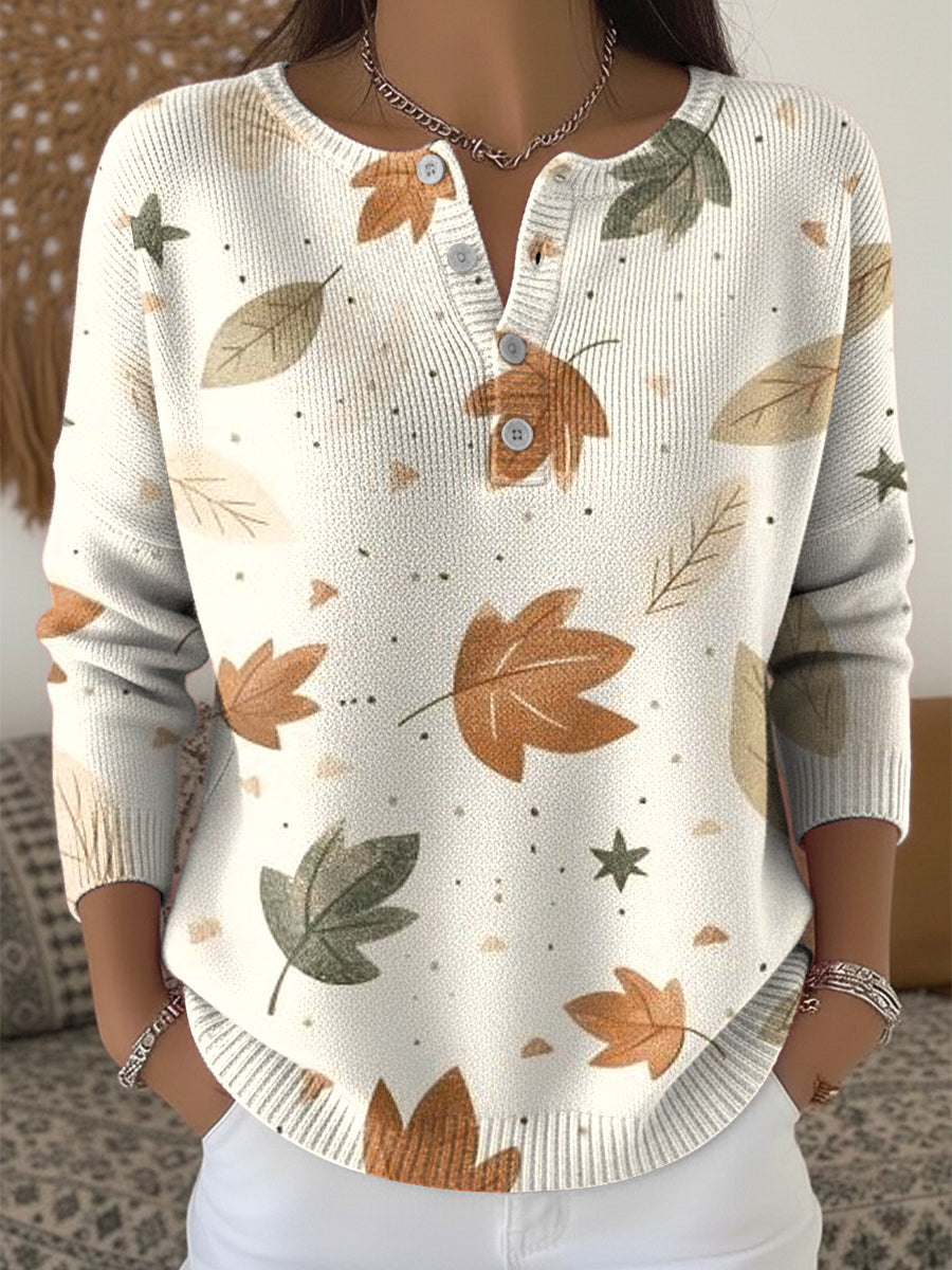 Dámské díkuvzdání roztomilý podzimní list umění v krku svetr