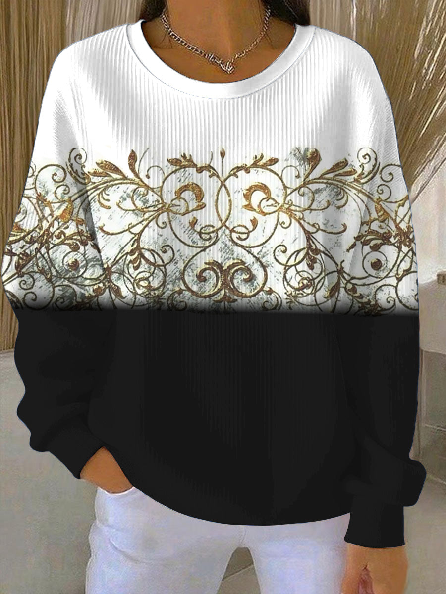 Dámské luxusní zlaté svitek tisk barvybloková mikina