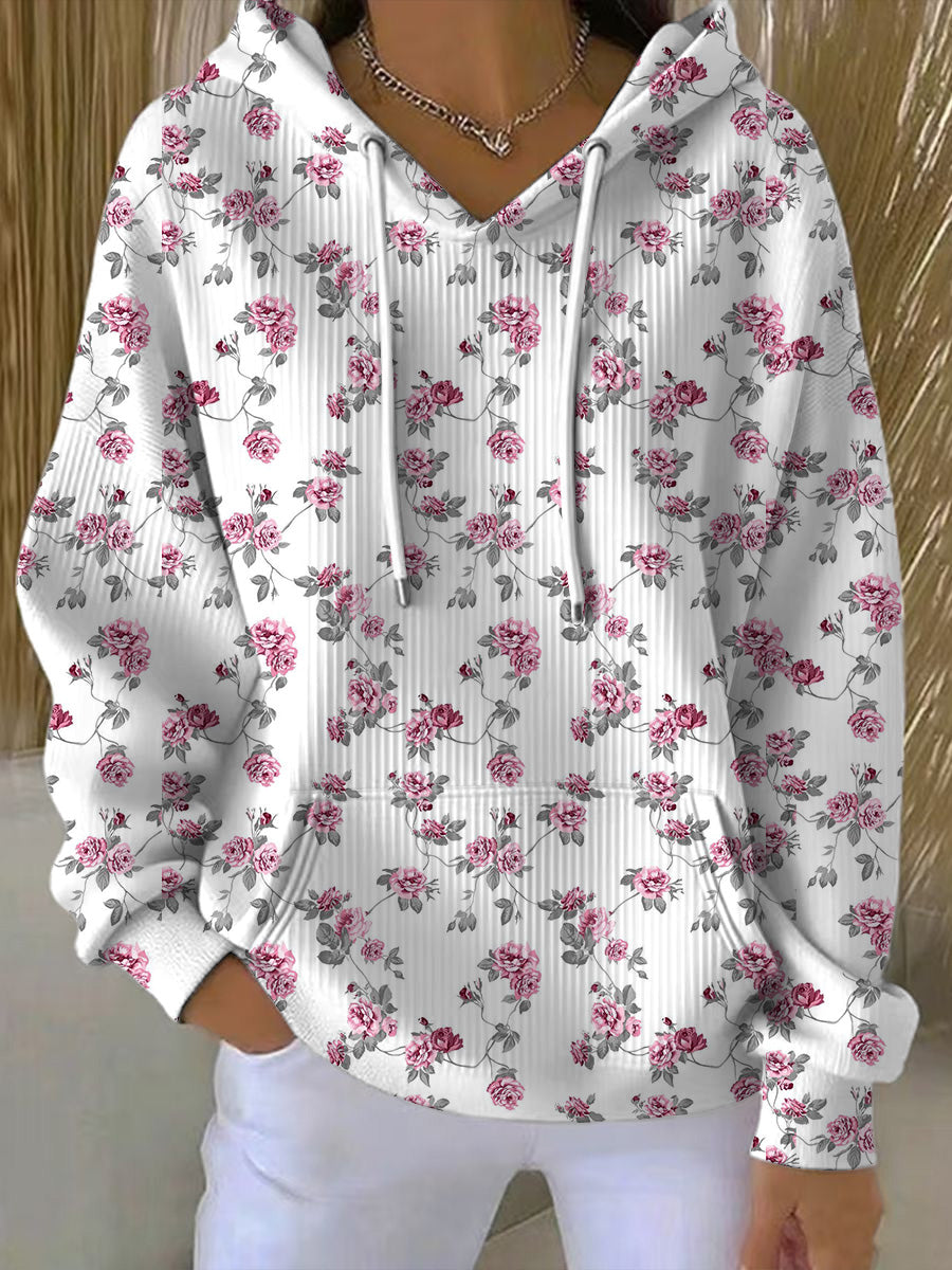 Dámské okouzlující růžová květinová bílá mikina