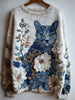 Dámské retro zvířecí umění tisk pohodlný denní svetr