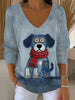 Dámské retro zvířecí tisk casual s dlouhým rukávem top
