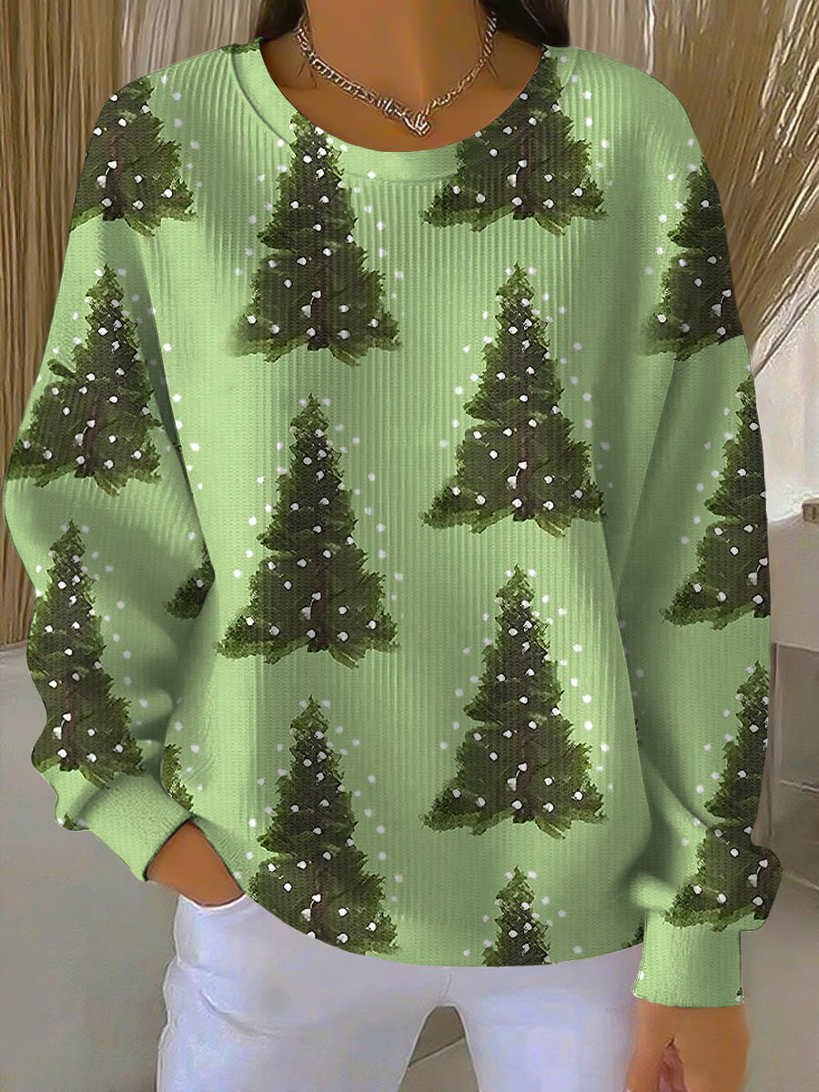 Dámské vánoční stromeček olejomaľba umění posádka krku pulóver
