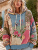 Dámské vintage květinová tisk pohodlí mikina s kapucnou