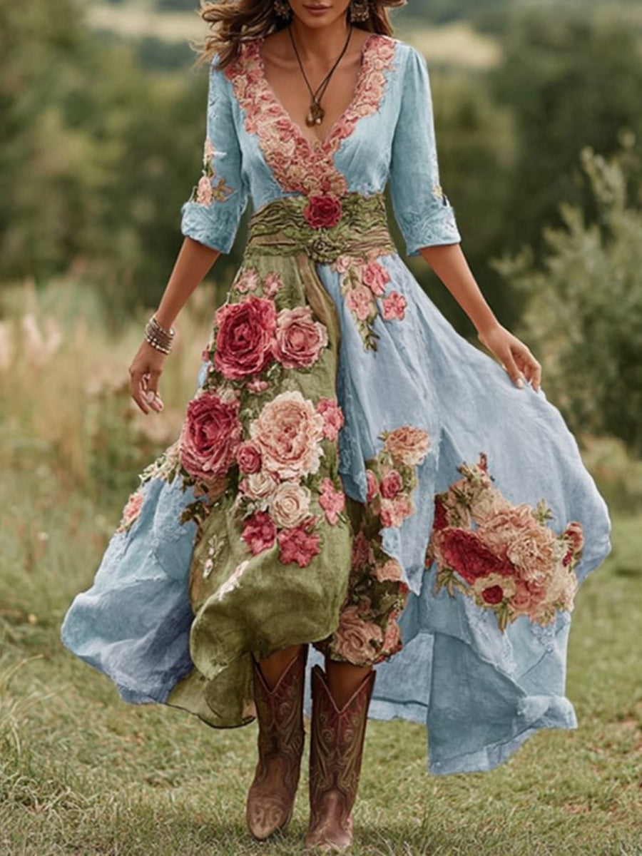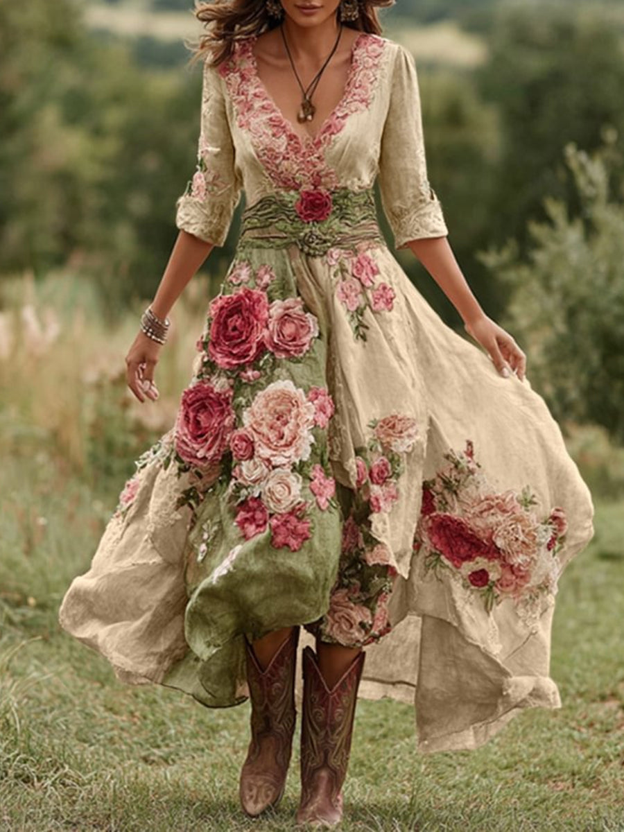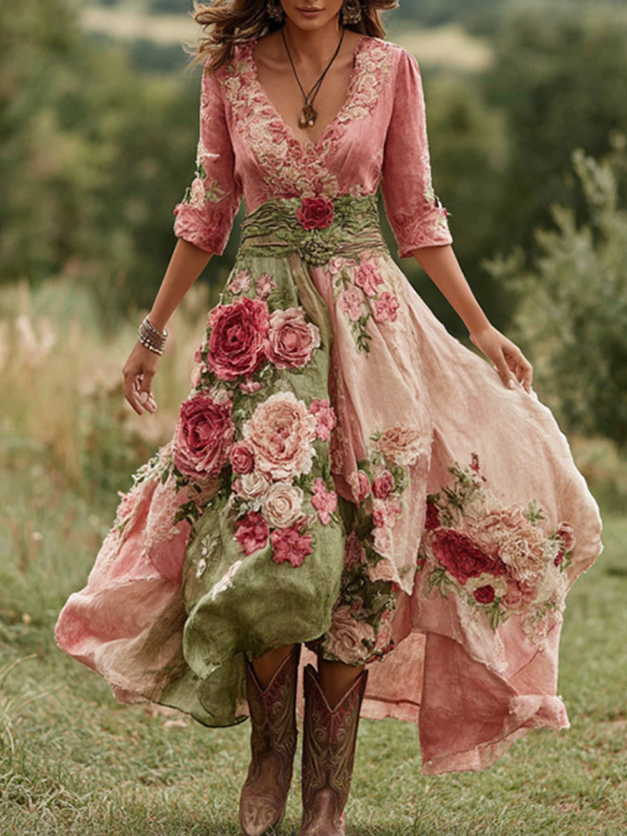 Dámské vintage květinové pohodlí midi šaty