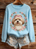 Dámské vintage umění zvířecí tisk útulný pletený svetr