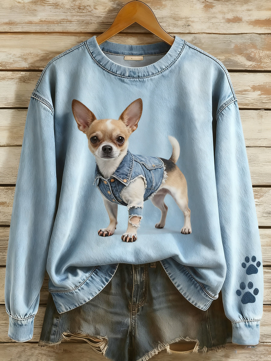 Dámské vintage umění zvířecí tisk útulný pletený svetr