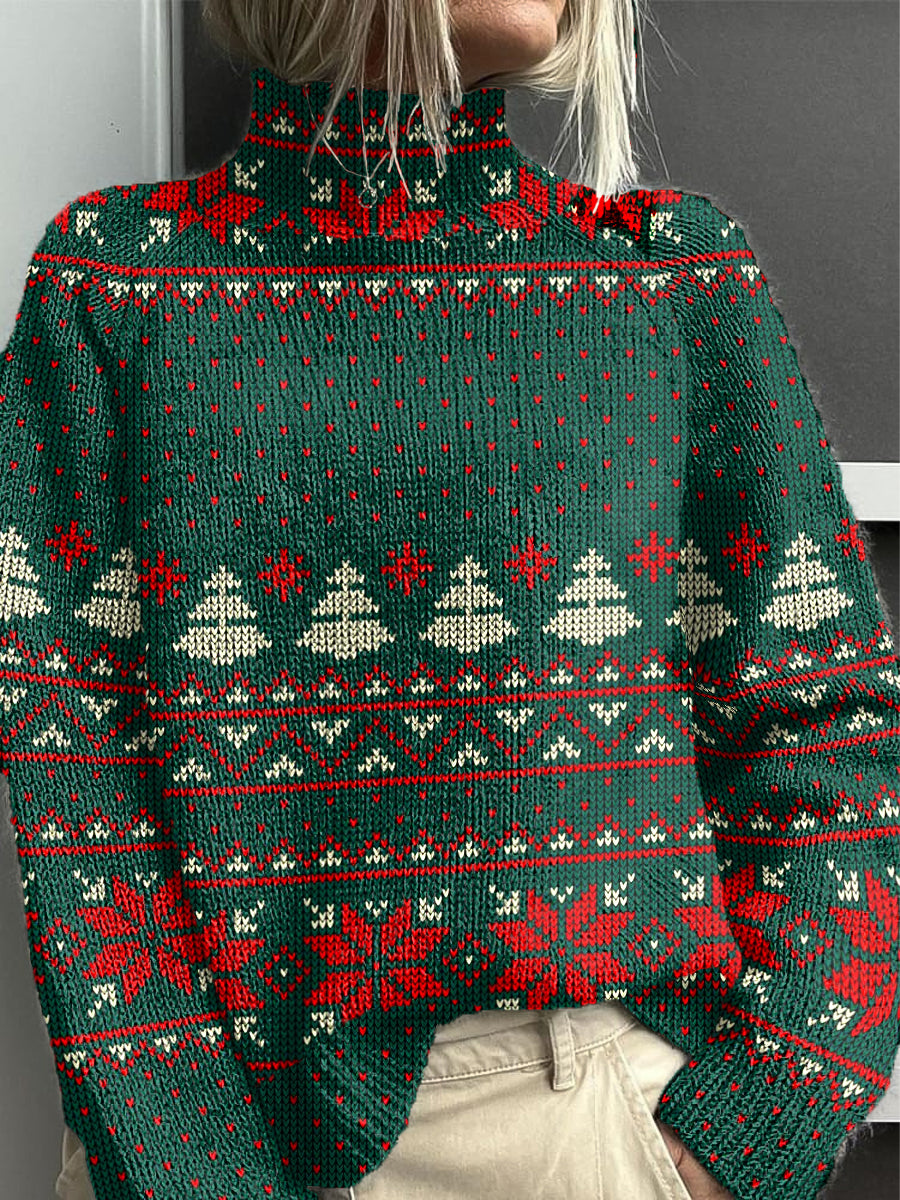 Dámské vintage vánoční vzor umělecké kolečko svetr