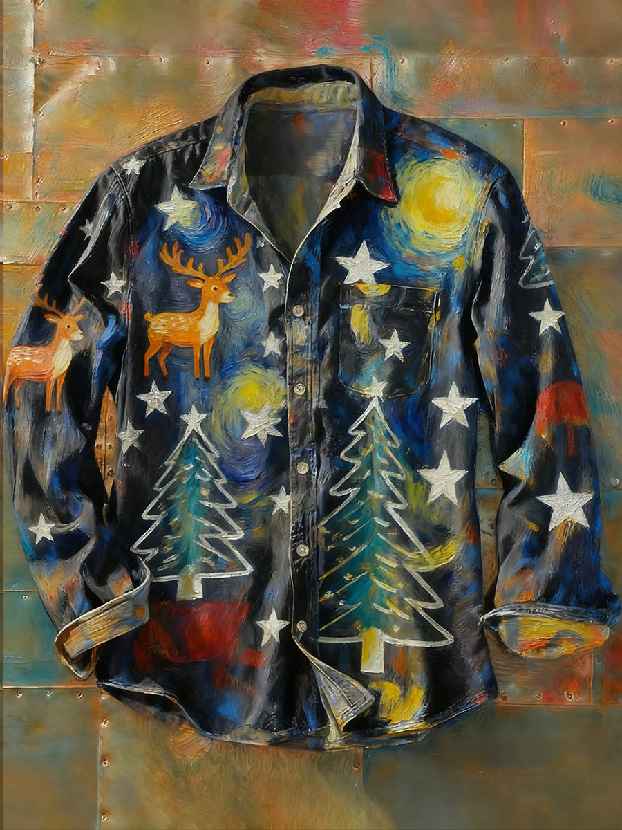 Pánské retro abstraktní art print příležitostné tričko s dlouhým rukávem