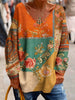 Retro bohémská květinová tisk vintage neformální bavlna v krku s dlouhým rukávem tshirt