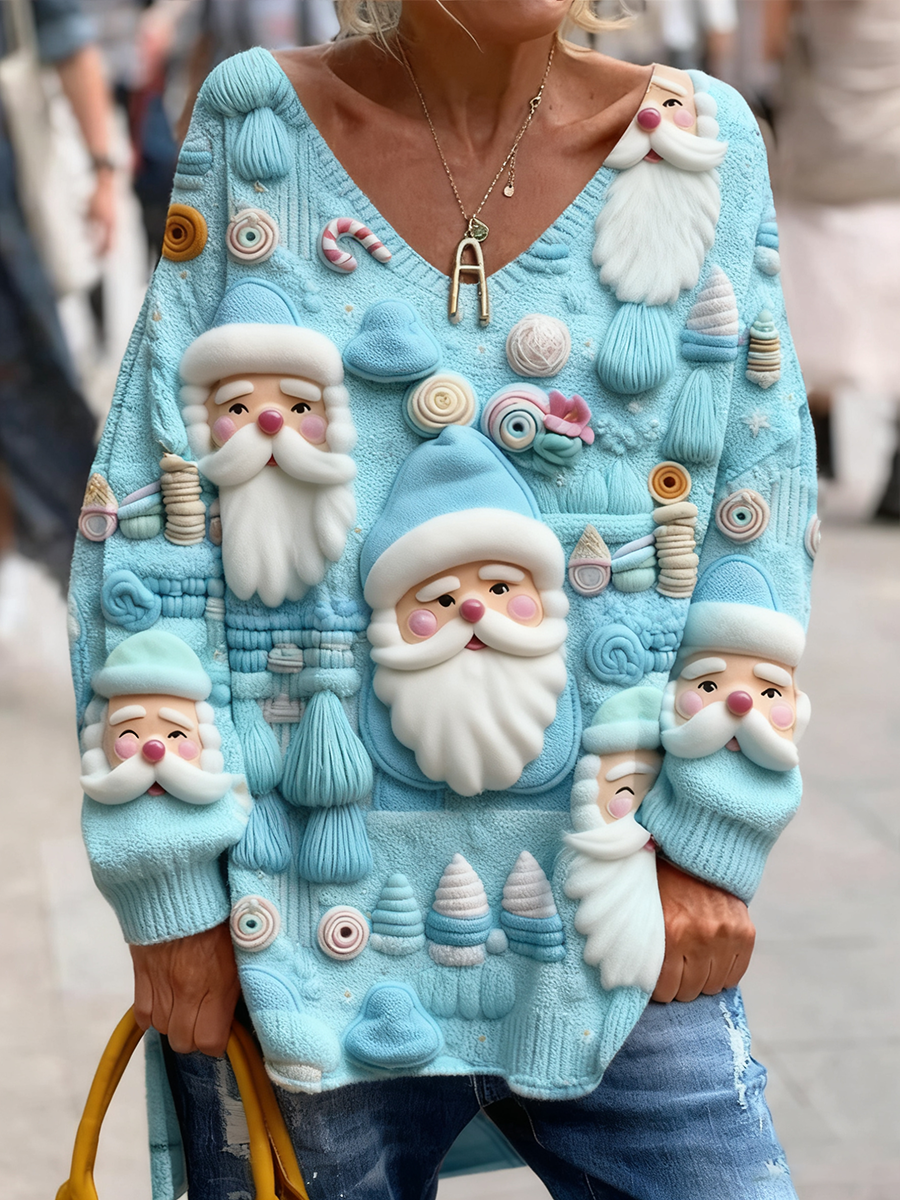 Retro vánoční zábava a roztomilé tištěné módní posádka krku top