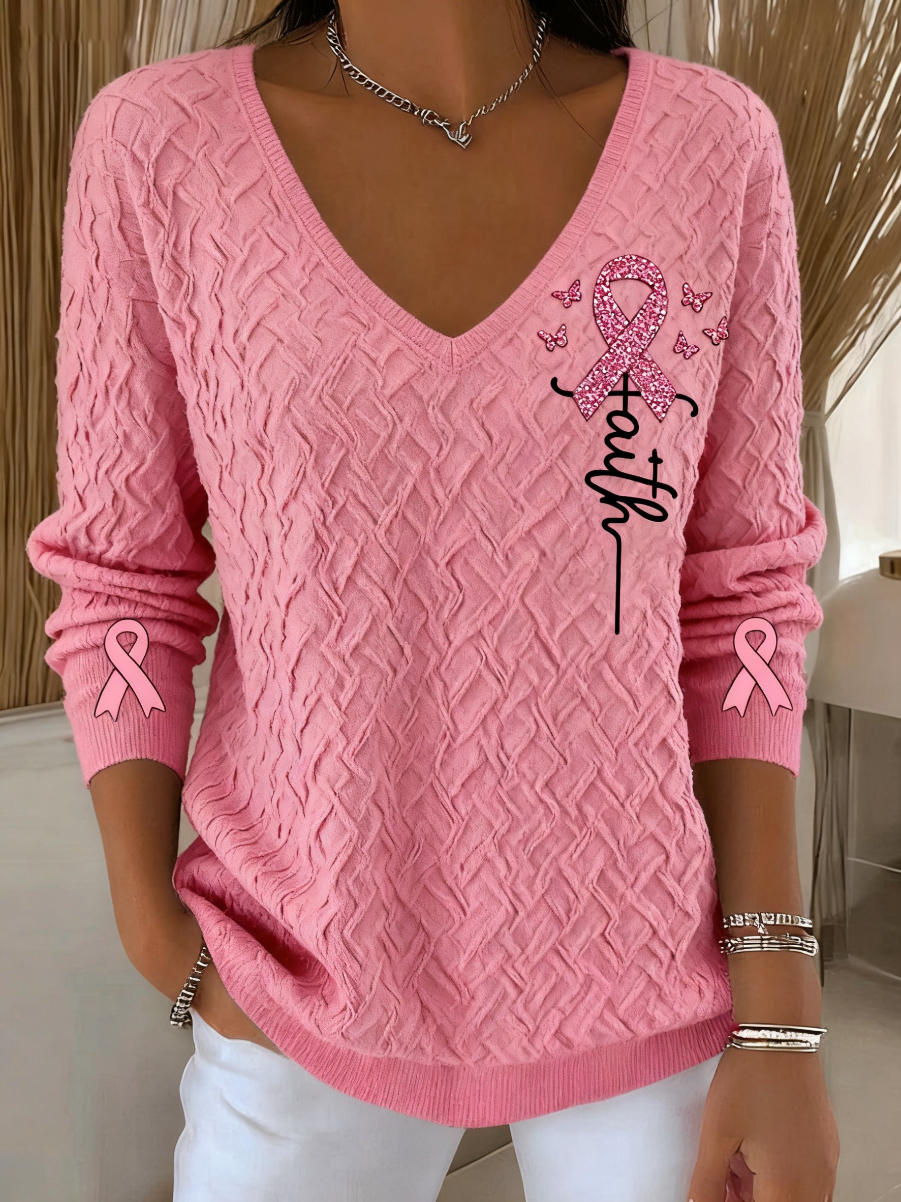 Ženská retro rakovina prsu diamant faith print svetr s dlouhým rukávem