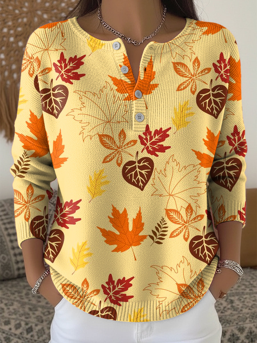 Ženské díkuvzdání barevné javorové listy umění v krku svetr