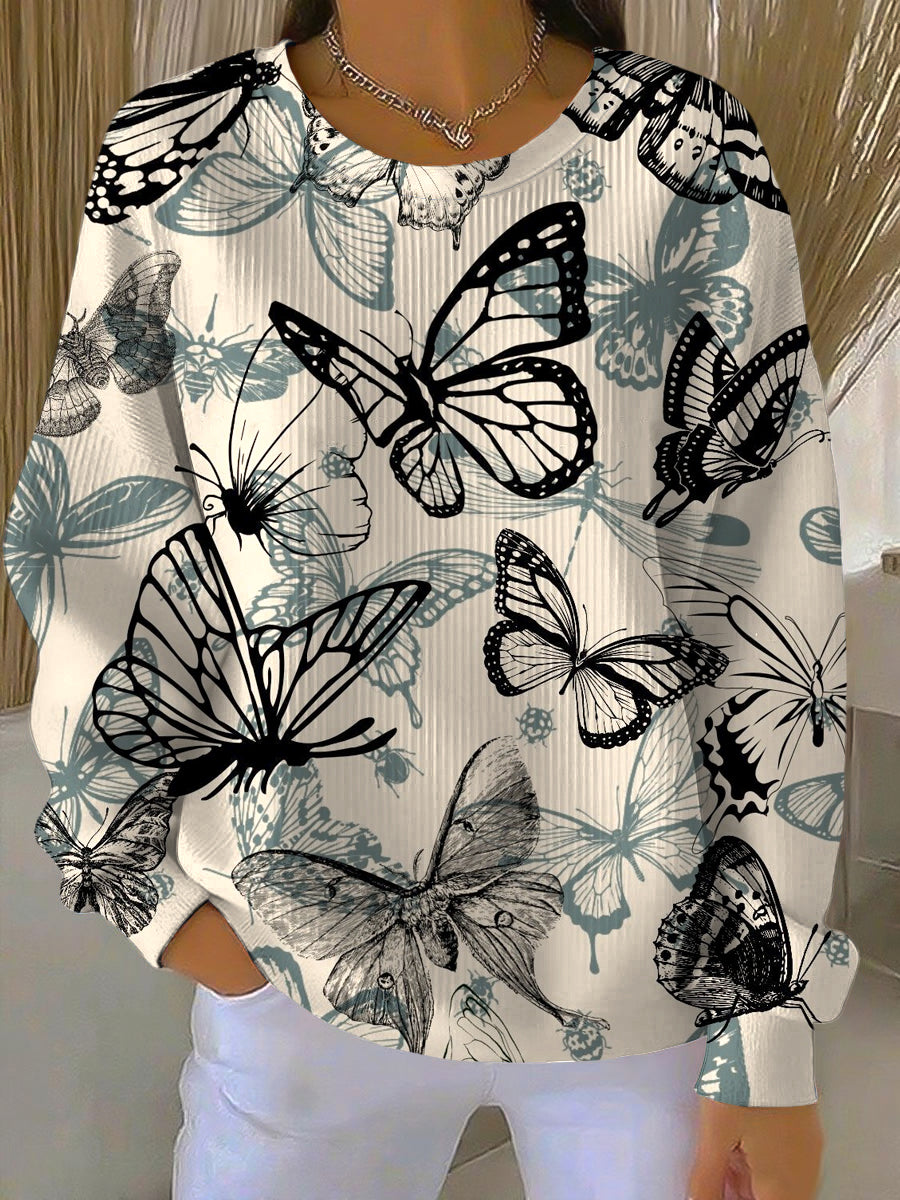 Ženské vintage abstraktní motýl umění příležitostné posádka krku pulóver