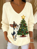 Ženy vintage vánoční zvířecí tisk casual dlouhý rukáv top