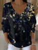 Ženy vintage abstraktní grapevine olejomaľba umění vneck top