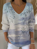 Ženy vintage abstraktní květinová malba umění vneck top