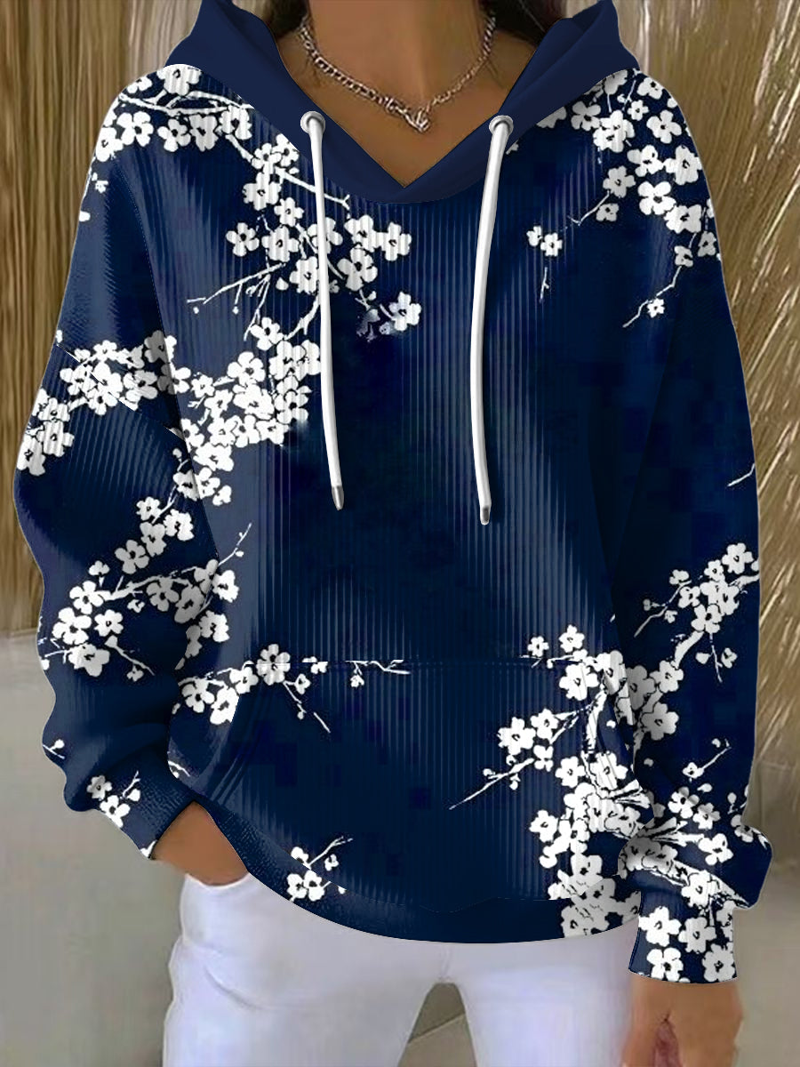 Ženy vintage minimalistická květinová umění příležitostná mikina